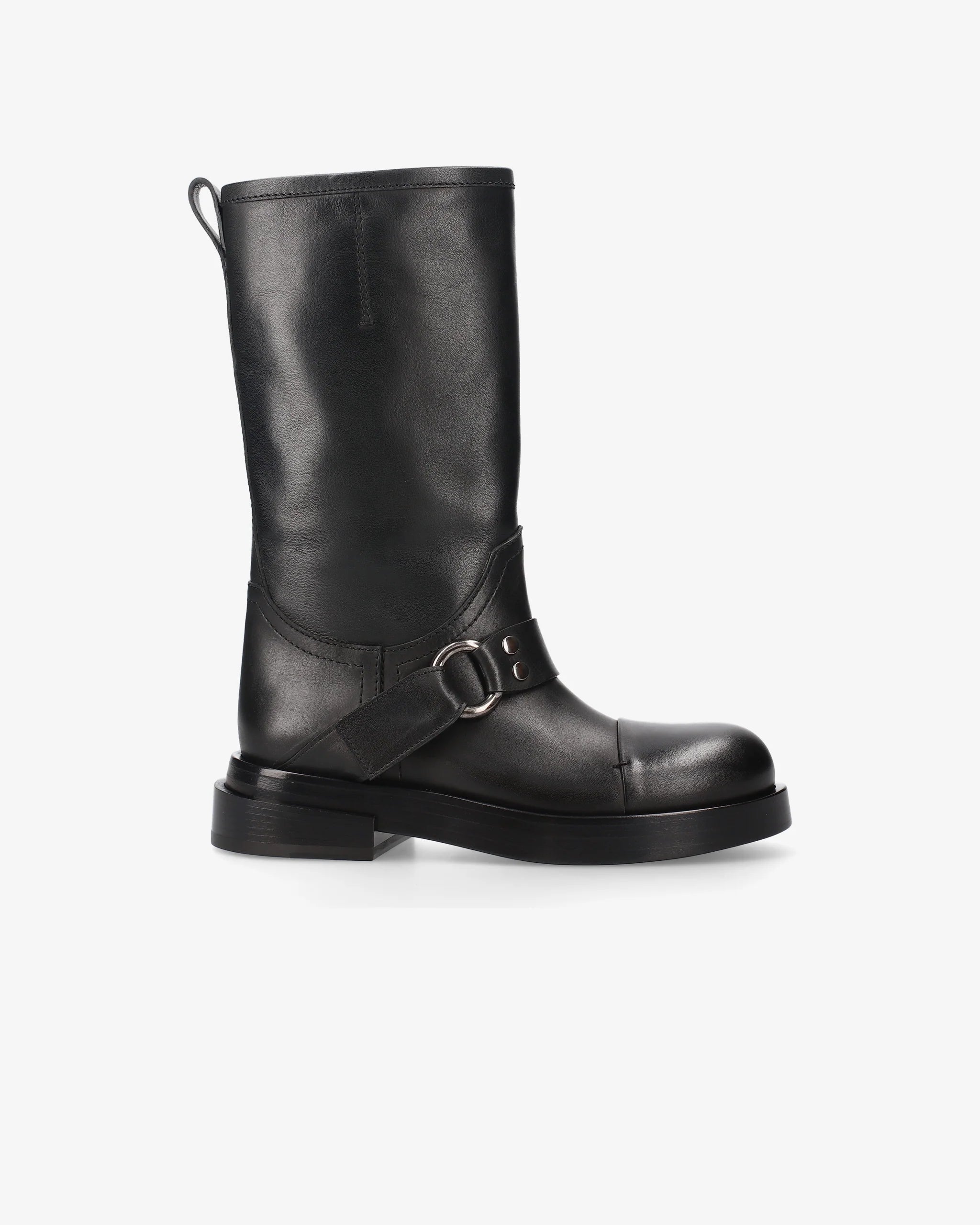 Black Leather Flat Boot M7215A