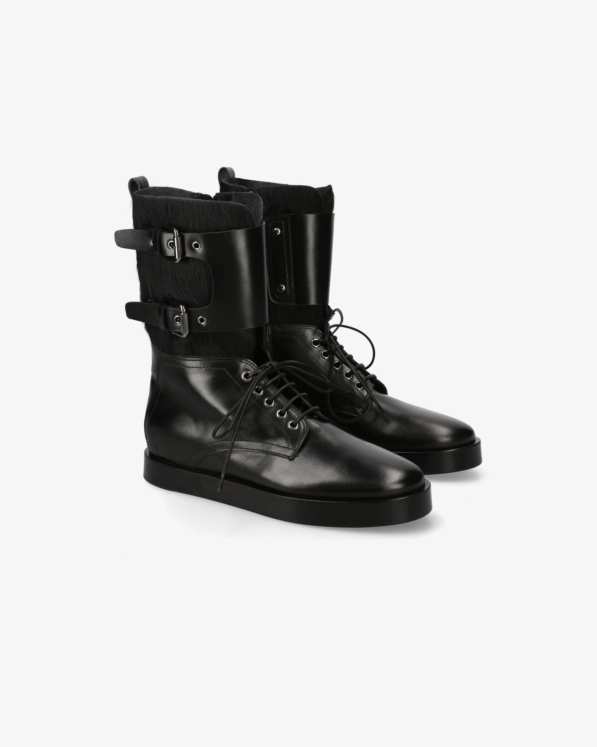 Black Leather and Fur Ankle Boots