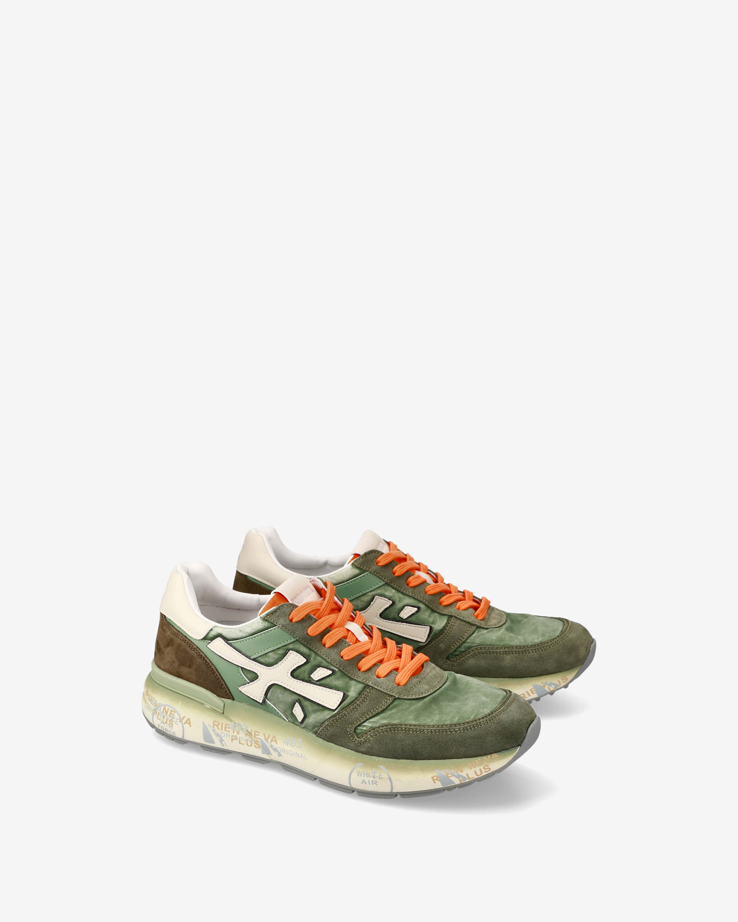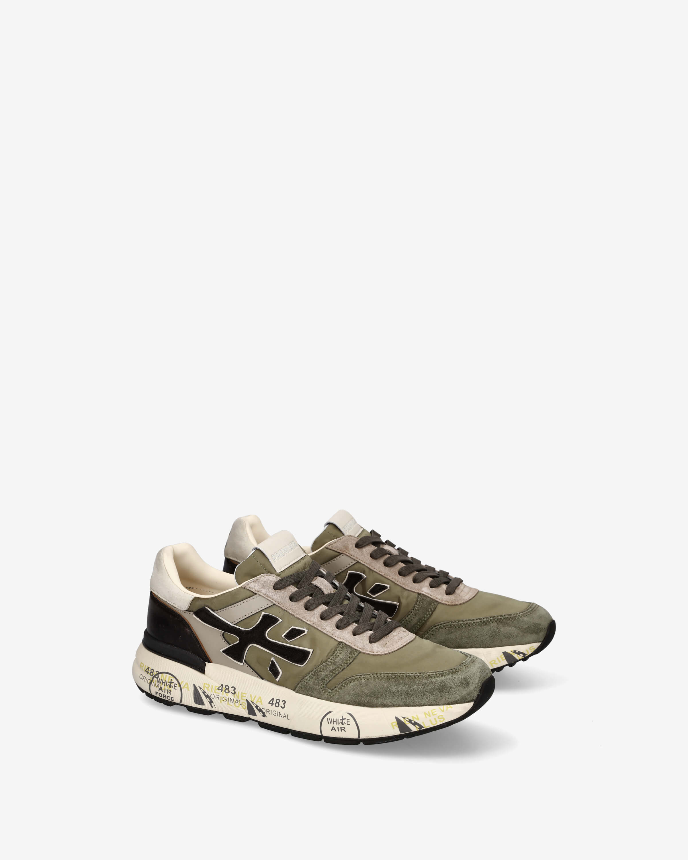The look is enhanced by the Premiata logo that extends along the entire side of the shoe.