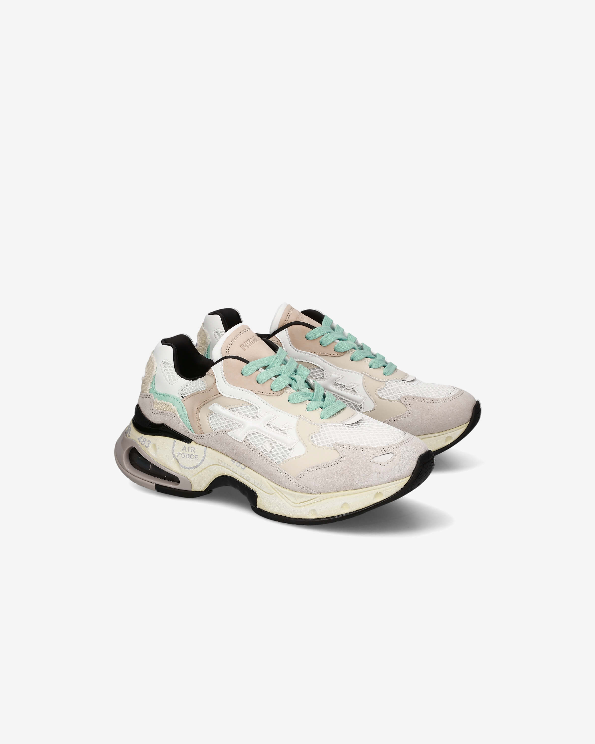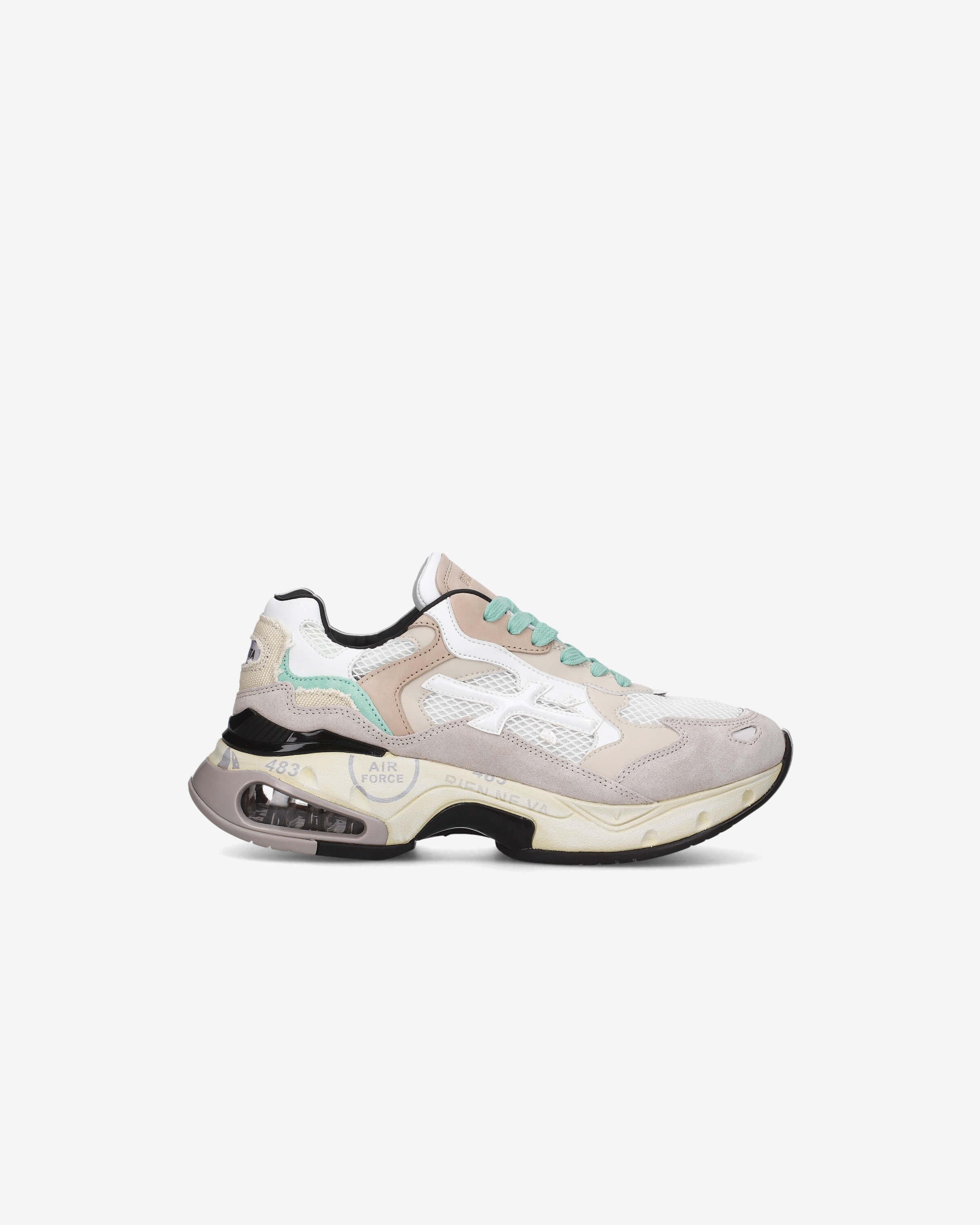 Sharky sneaker with the upper composed of numerous parts assembled with special cuts.