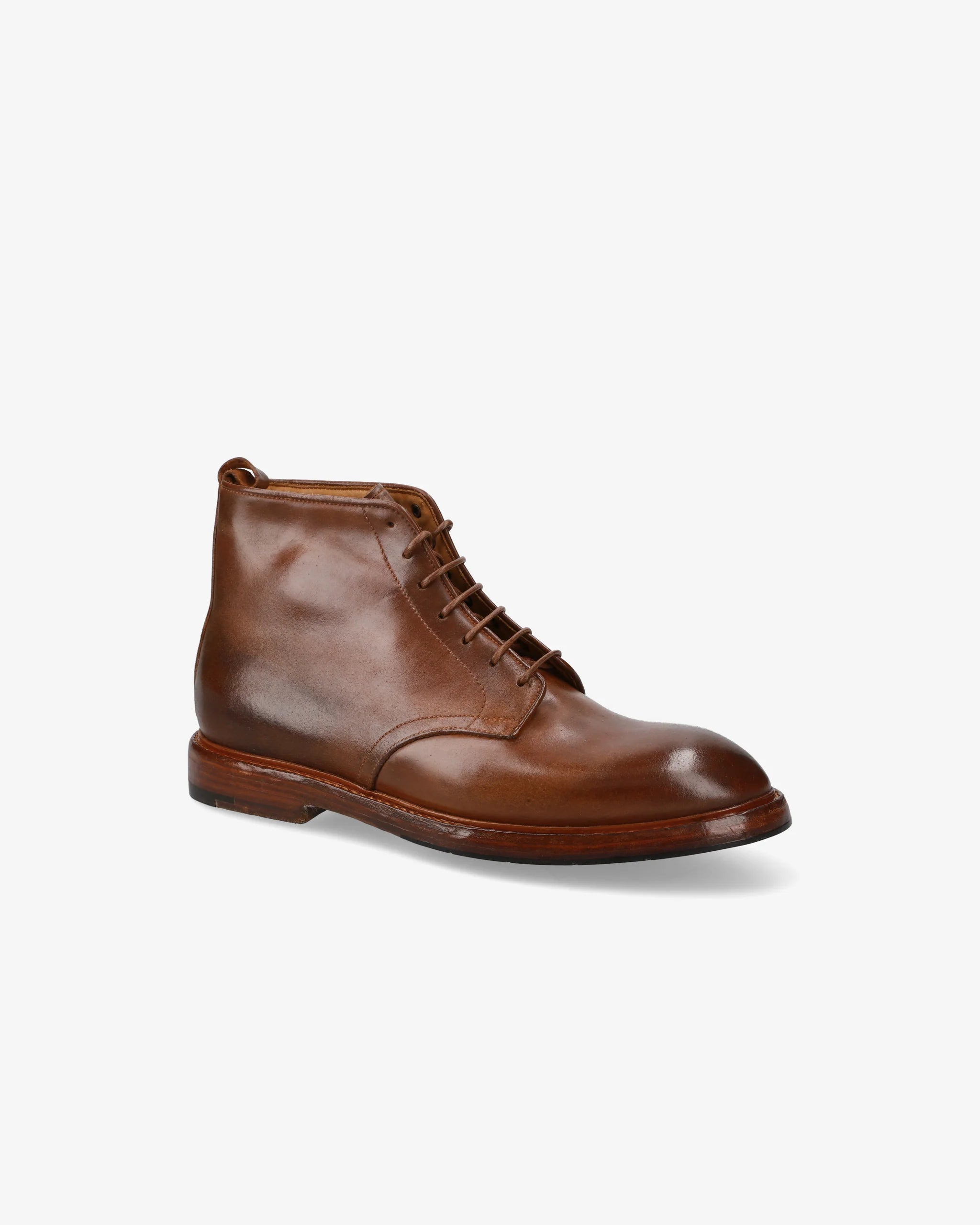 Refined and timeless, this brown Cordovan lace-up ankle boot expresses the essence of Italian craftsmanship. The naturally glossy finish of Cordovan leather gives it a deep, elegant tone and remarkable resistance, ensuring a long life and a flawless appearance over time. Designed for comfort and sophistication, it transitions effortlessly from formal wear to everyday elegance.