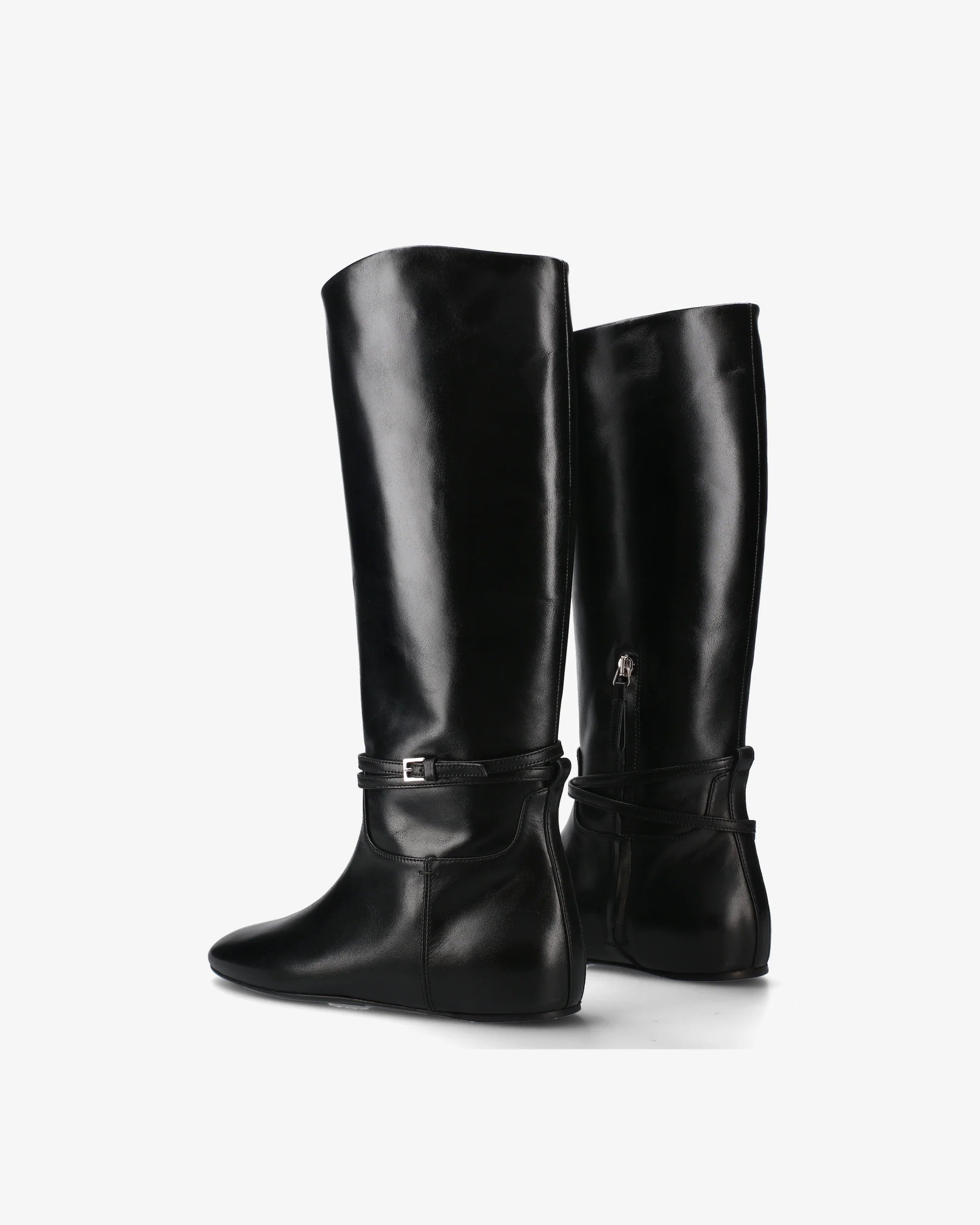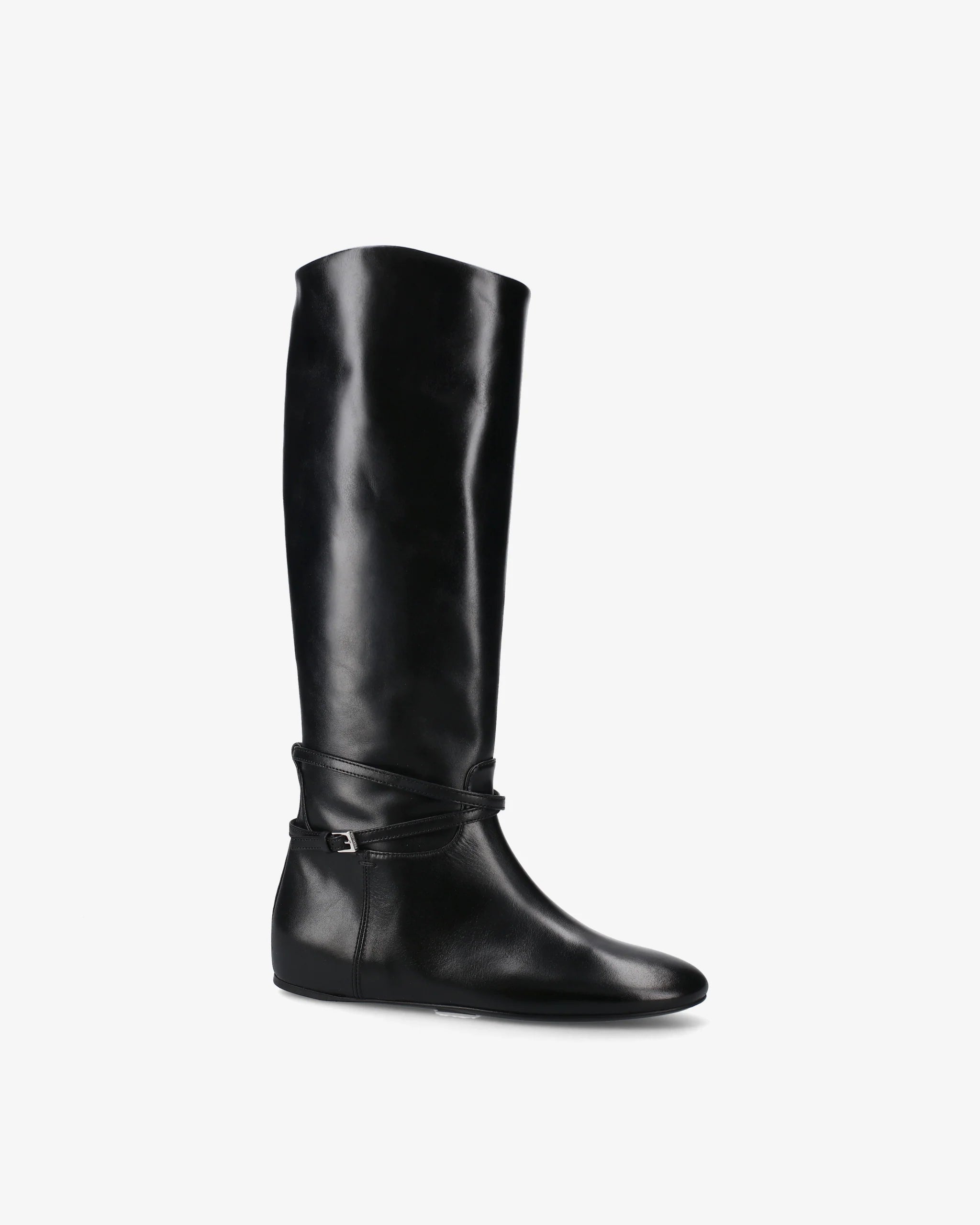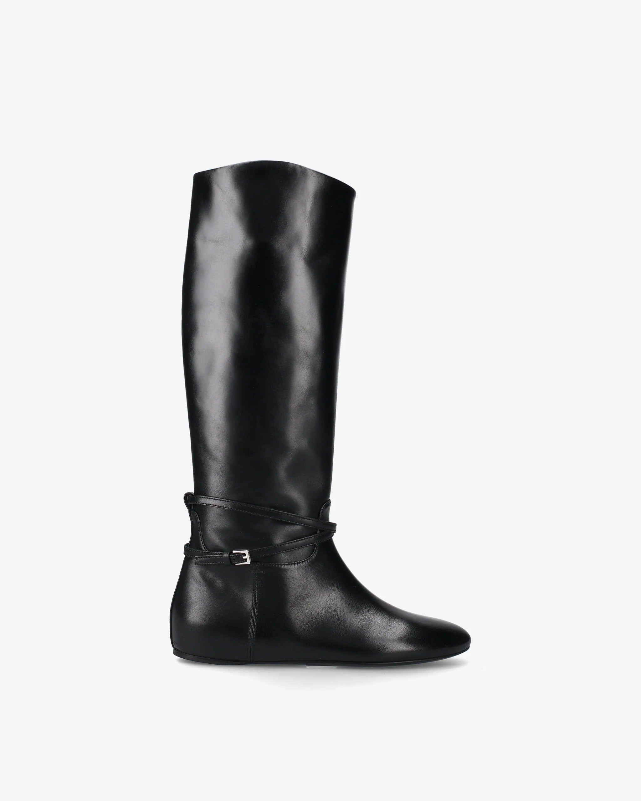Black Leather Flat Boot M7215A