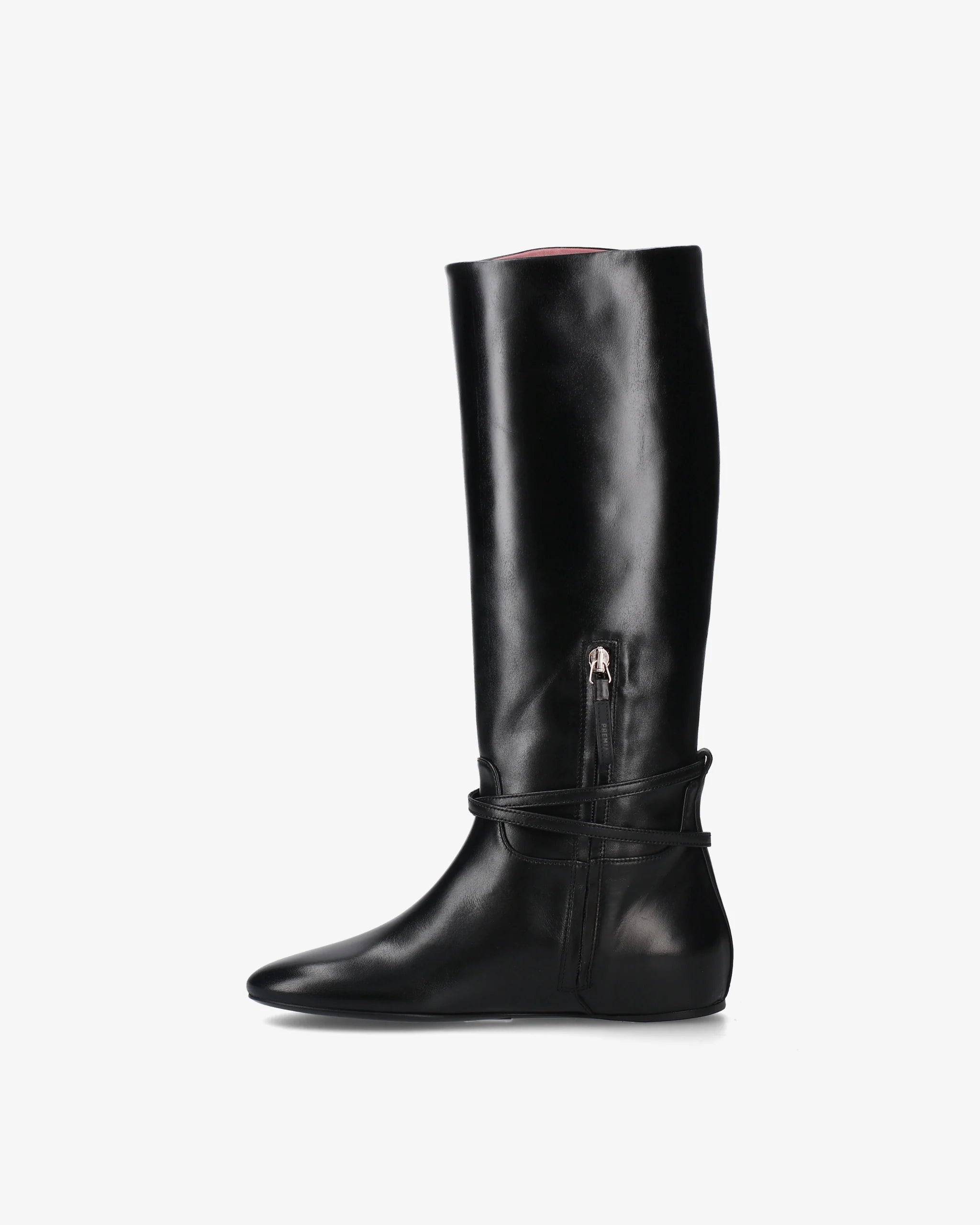 These Made in Italy riding-inspired boots reflect the refined craftsmanship and minimalist elegance of Premiata Women’s line. Made from supple calf leather, they feature a sleek knee-high silhouette with a rounded toe and a delicate ankle strap with buckle detail. The flat sole ensures all-day comfort, making them the perfect blend of sophistication and practicality for everyday wear.