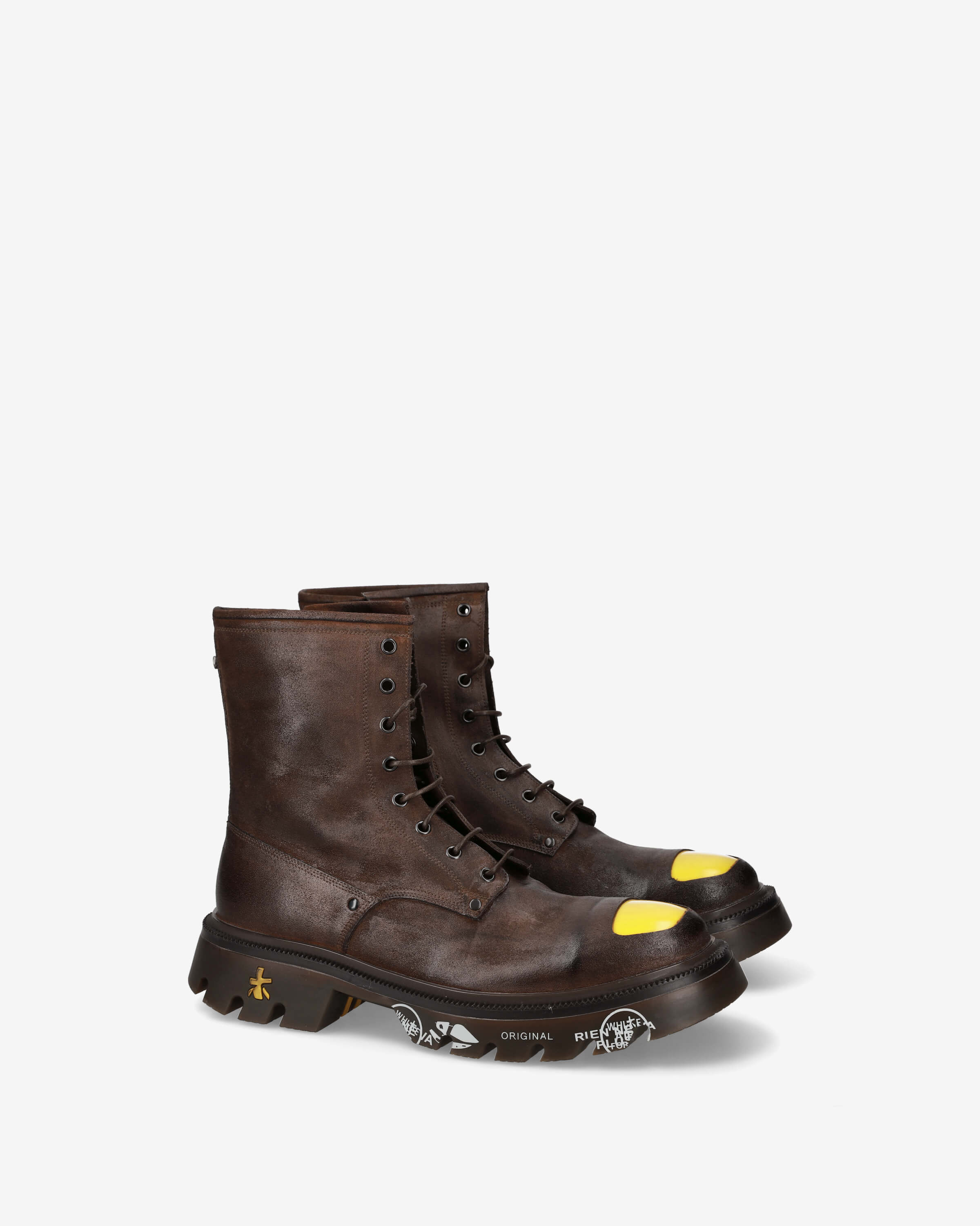 The Brixton collection channels metropolitan energy through distressed and polished leather finishes, contrasting toe-caps and graphic treaded soles. Designed for both men and women, these shoes blend industrial detail with sleek silhouette for a definitive contemporary statement.