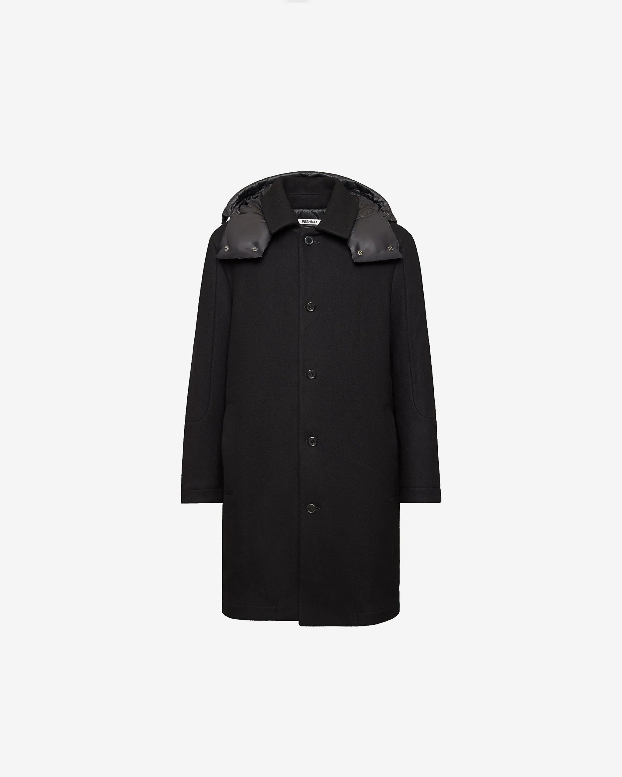 Wool Coat with Nylon Details Black PR400100